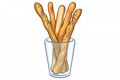 un gressin : petit pain allongé, sec et friable