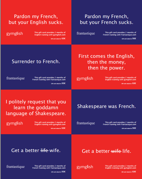 Nous aimons créer des quiz et des concours que nous partegeons avec nos partenaires. Contactez-nouset nous vous fournirons volontiers du matériel pour votre prochain cadeau Gymglish.