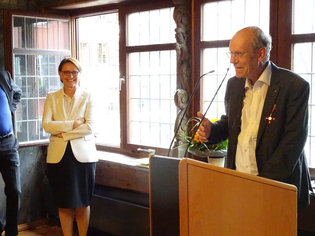 I like the Frantastique lessons. I also attend a course (now online) in the Franco-German Cultural Institute in Tübingen. Speaking of which, this course is better than the Frantastique lessons. But for grammar, Frantastique is better. I complete three lessons with funny stories and two lessons dedicated to revisions every week. Frantastique and my course at the Institute complement each other very well. The photo was taken during my tribute with the FRG Merit Award in 2017. (FR) J'aime bien les leçons Frantastique. Je prends aussi un cours (en ligne) à l'Institut culturel franco-allemand à Tübingen. Pour l'expression orale, ce cours est mieux que les leçons Frantastique. Mais pour la grammaire, Frantastique est meilleure. J'ai trois leçons avec des histoires amusantes et deux leçons pour la mémorisation par semaine. Frantastique et mon cours a l'Institut se complètent très bien. La photo a été prise pendant mon hommage par le prix de mérite de la RFA en 2017.
