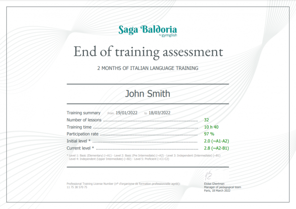 Após suas primeiras lições, você receberá uma avaliação de nível completa (contendo um resumo atual dos seus pontos fortes e fracos). Seu nível é determinado de acordo com o Quadro Europeu Comum de Referência para Idiomas (CECR).